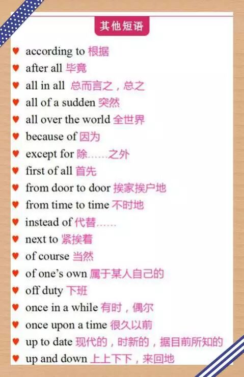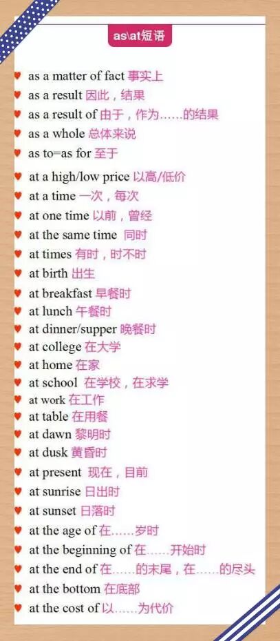 一看就懂 | 名词前面到底加什么介词好? 发布时间:2017-07-27 15:13:44作者:春喜外语来源:www.tracyclass.com浏览量: (转载请注明出处:春喜外语外教一对一、少儿外教一对一、在线英语培训) 本文章由春喜在线英语于2017.7.27日编辑发布 很多童鞋都会被介词给搞糊涂了,小编今天就跟大家分享一些介词的使用方法,这些名词前面的介词都是这么用滴! 亲爱的们都get 到了吗? 本文标签: 上一篇:中学八大时态用法详解,暑假全搞定! 下一篇:最全的英语句型!!快Get!!